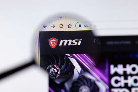 Saint-Petersburg, Russia - 18 February 2020: MSI Micro-Star International company website page logo on laptop display. Screen with icon, Illustrative Editorial.