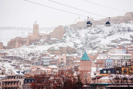View of Tbilisi Old town Sololaki in winter while snow