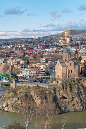 Georgia, Tbilisi - 18.04.2019. - Metekhi Temple from Freedom Square