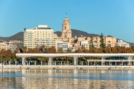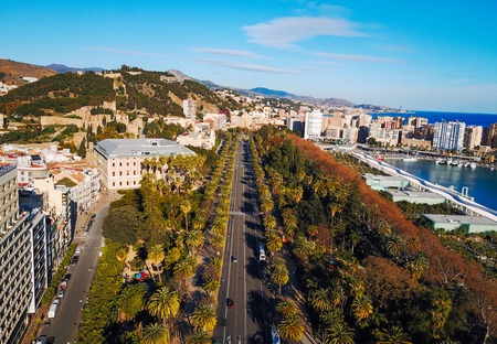 Malaga, Spain - December 4, 2018: Cityscape of Malaga, Spain. Modern boulevard called