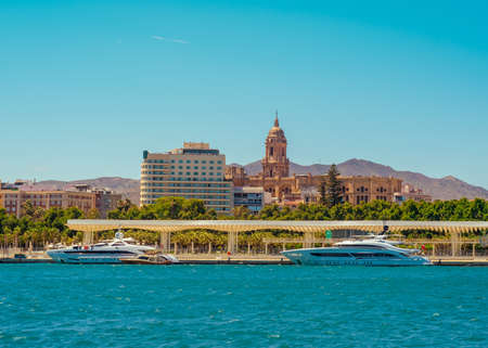 MALAGA, COSTA DEL SOL, SPAIN - CIRCA MAI, 2019: Port of Malaga on the Costa del Sol in Andalusia, Spain