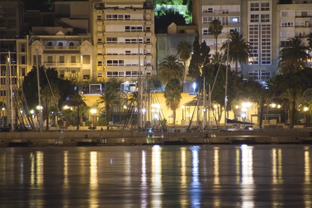 Illuminated skyline of Malaga in Spain at Costa del Sol in Andalucia