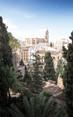 Top view from the Arab fortress of Alcazaba to the city of Malaga (Spain) and the Cathedral of Malaga