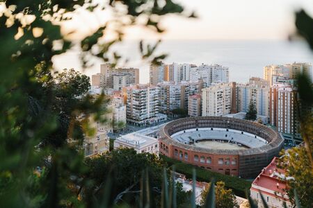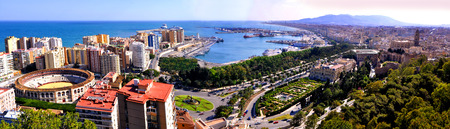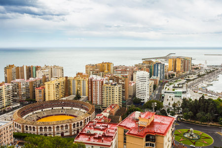 Panoramic view of Malaga, Spain. Bullfighting in spain