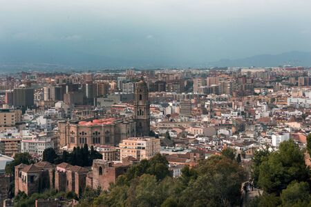 Malaga, Andalucia, Spain, - December 17, 2019: View from the Alcazaba fortress on the city centrum of Malaga