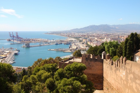 Malaga in Andalusia, Spain. Aerial view of port and the city.