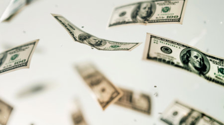 Hundred Dollar Bills Floating in the Air