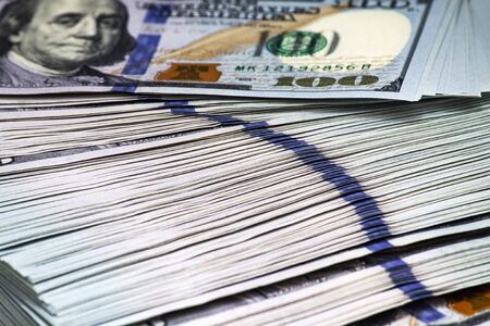 American cash dollars close-up. One Hundred Dollar Banknotes. Soft focus image.