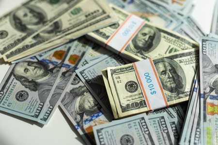 American dollar usa packs on money background. Financial concept.