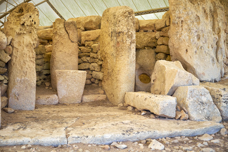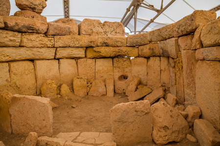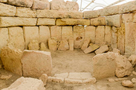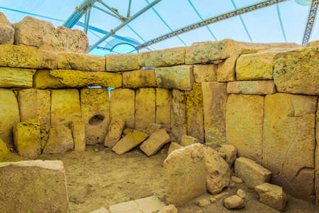 HAGAR QUIM, MALTA - OCTOBER 16, 2016: Prehistoric temple, megalithic landmark of Malta island. Inside view.