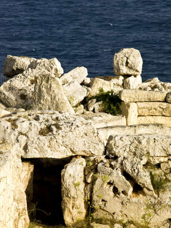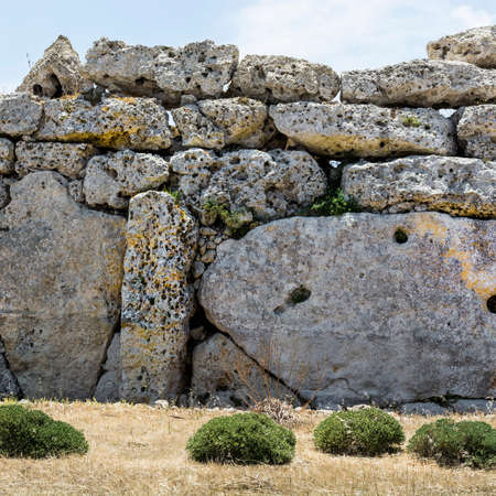 Hagar Qim megalithic temple in the Mediterranean island of Malta, prehistoric Ggantija phase, between 3600 BC and 3200 BC.