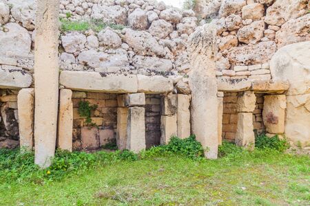 The menhirs of the megalithic structure's interior of Hagar Qim temples, Malta