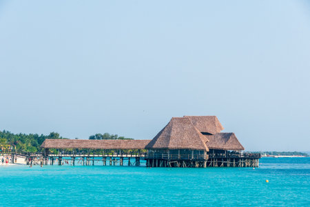 Closed during the pandemic, a restaurant on the water on the shores of the Indian Ocean on the island of Zanzibar. Recreation and tourism concept