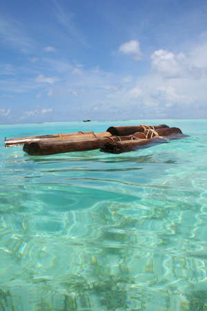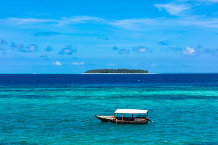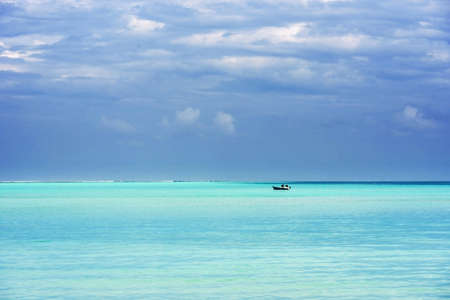 Lonely boat in the Indian Ocean, Male, Maldives. Copy space for text