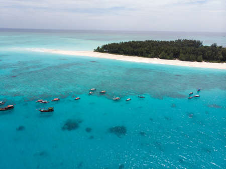 The beautiful tropical Island of Zanzibar aerial view. sea in Zanzibar beach, Tanzania.