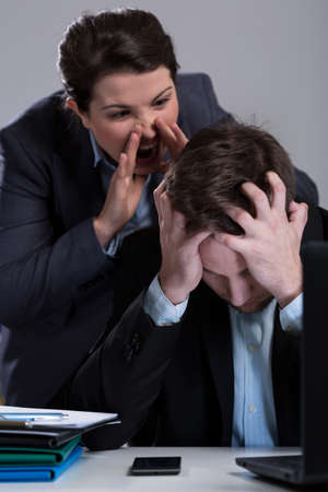 Crazy boss yelling at employee at work