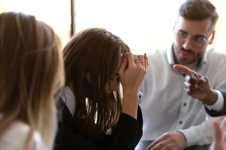 Displeased Business People Shouting At Unhappy Female Employee In Office