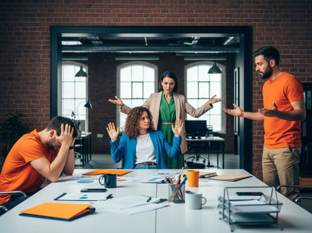 Business team in conflict during a heated discussion at work