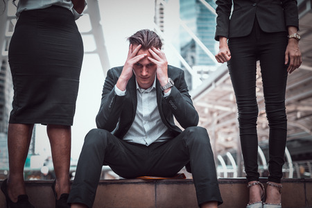 Stressed businessmen have problems and headaches with failure in what to expect.