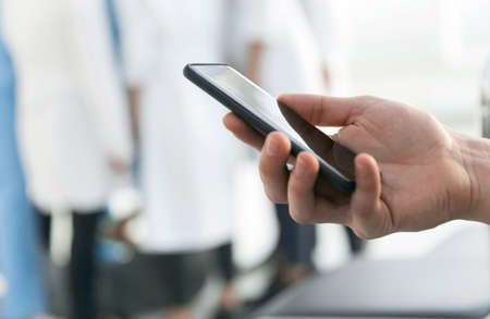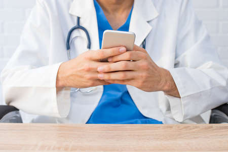 closeup of doctor hands with mobile phone