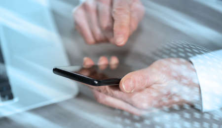 Businessman hand using mobile phone. Finance and trade concept. Close up