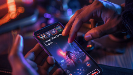 Playing Clash of clans mobile game. Point of view gaming on smartphone