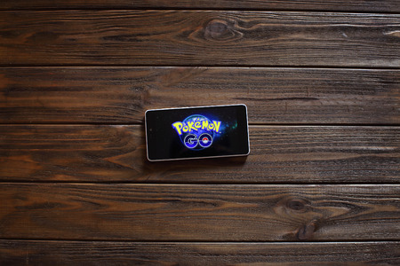 Vinnitsa, Ukraine. - August 12: Smartphone on a wooden board with Pokemon Go logo, August 12, 2016 in Vinnitsa, Ukraine