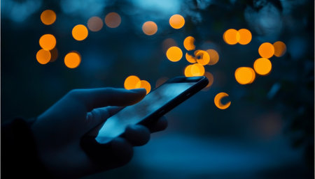 A striking image of a smartphone displaying a bustling city at night, with vibrant bokeh effects creating an exciting atmosphere, ideal for themes of technology and urban life.
