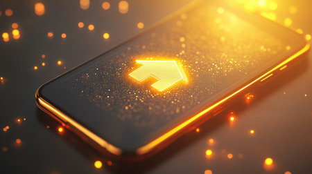 Smart home concept phone screen house, wireless connections, electronics icons for iot automation