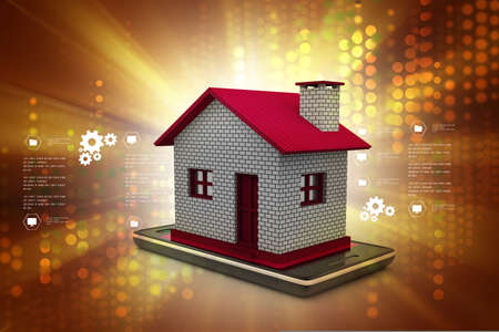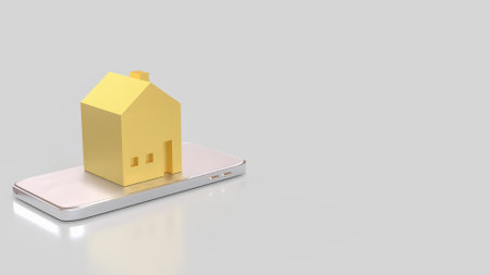 House for sale. Real estate catalog in the phone. Online sale of a house. A mobile application for the sale and purchase of houses and offices. Residential and business real estate. 3d image.