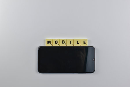 Scrabble tiles spell Mobile beside a smartphone.