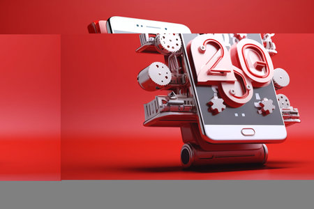 Mobile phone connected to 5G network wireless system. Concept photo of high speed mobile internet, new generation networks