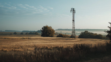the AI Image Generator, Tall Communication Tower in a Rural Landscape During Daytime