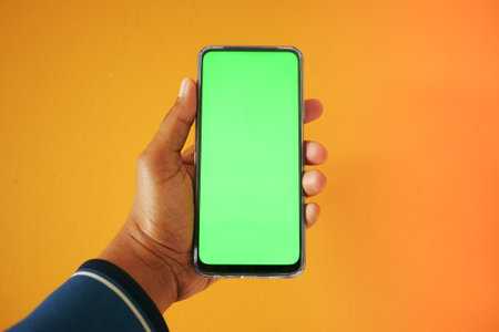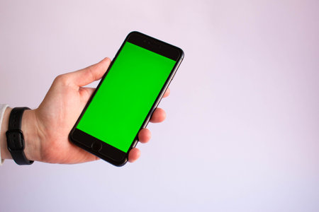A mobile phone featuring a green screen, ideal for app development and design projects. This image showcases modern technology in a sleek format.