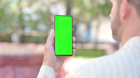 Middle Aged Man Using Phone with Green Screen Outdoor