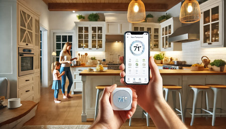 smart thermostat controls home temperature with a single touch, created with generative ai