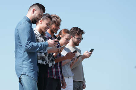 Group of young people use their phones