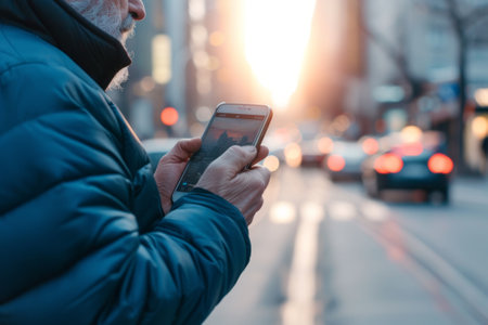 Hands holding a smartphone displaying a navigation app with a map of a city street at dusk, providing location and guidance for exploring urban environments