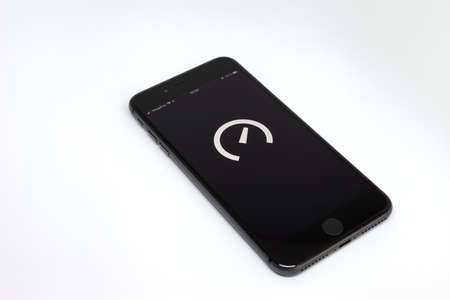 Moscow / Russia - July 13, 2019: Black iPhone 8 Plus on a white background. On the screen, the program Speedtest