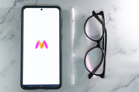 Mobile phone with myntra unicorn ecommerce startup for shopping dresses, clothes, apparel and designer items in India asia