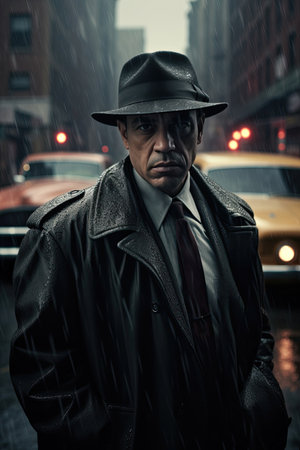 New york city gangster, Italian Mafia, Beanie, Rainy Day, Taxis in the Background