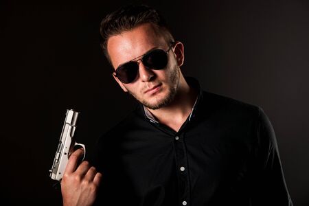 Gangster, man with a gun ready to shoot