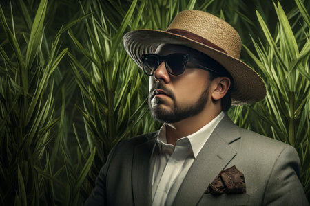 a man wearing a hat and sunglasses