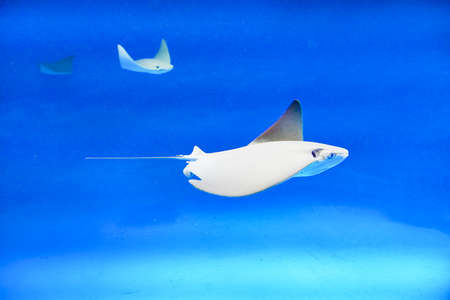 Stingray swim in deep blue water on sea background
