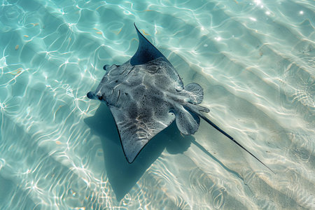 Aerial view of a stingray in the ocean. Drone photography.