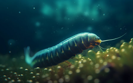 Microscopic insects or invertebrates macro close up, exploring the intricate details of their microscopic anatomy.