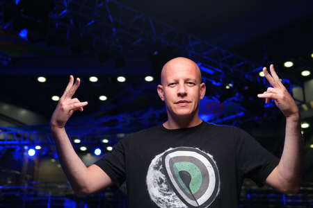 Kazan, Russia - June 28, 2019: performance of the Iranian group Infected Mushroom at the Pyramid Club. Portert of lead singer Amit Duvdevani