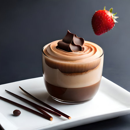 Decadent mousse au chocolat in glass with cocoa powder splash for dessert delight