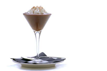 Chocolate mousse in a glass on a white background. Selective focus.