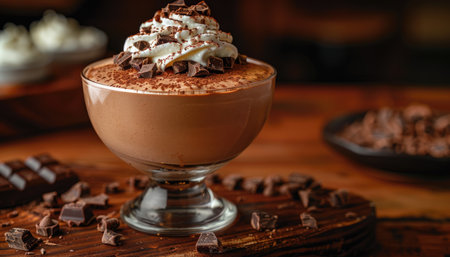 Decadent Chocolate Mousse Dessert with Whipped Cream and Rich Dark Chocolate Shavings on Top